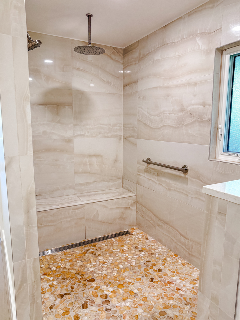This luxurious onyx bathroom remodel brings elegance and sophistication to every detail. Rich tones of onyx stone set the foundation for a space that feels both timeless and indulgent. Custom tilework, sleek fixtures, and ambient lighting come together to create a serene, spa-inspired retreat.