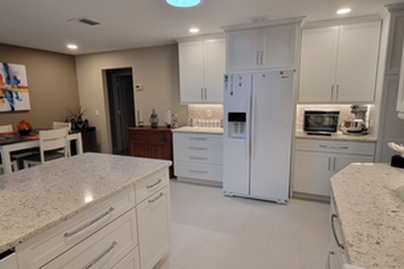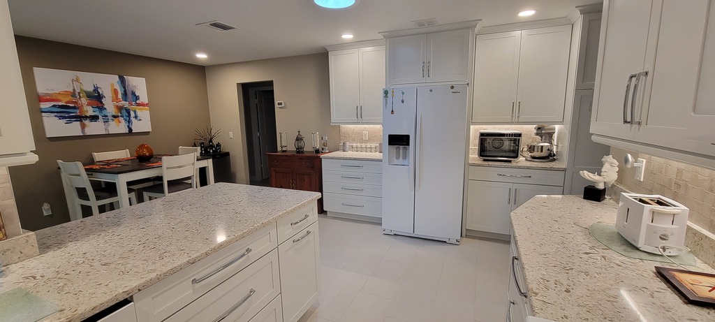 From new floors to the celling and everything in between, this home got a total makeover! From start to finish the homeowners expressed their vision for the home and we got to work, tearing out the old to make way for the dream home they have always wanted. The kitchen features undermounted lights over the countertop, crown molding and a fridge panel to give a finished look like no other. The bathrooms got a much-needed update. From something out of the 70's to a beautiful Modern bathroom. We couldn't be happier with the end results!