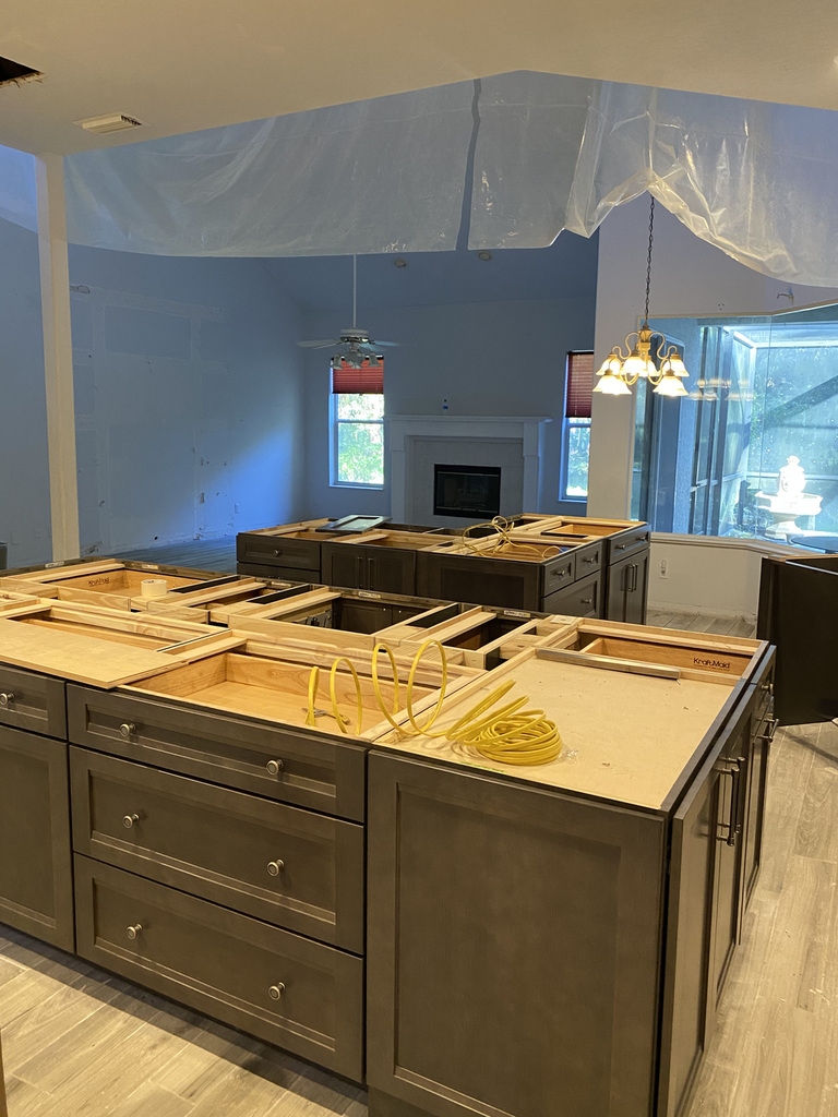 Are we seeing double? Double kitchen islands have been trending recently due to their functionalality and space-saving attributes. With the combination of hidden storage and more countertop space than one thought possible, who wouldnt want to cook and entertain in this kitchen.