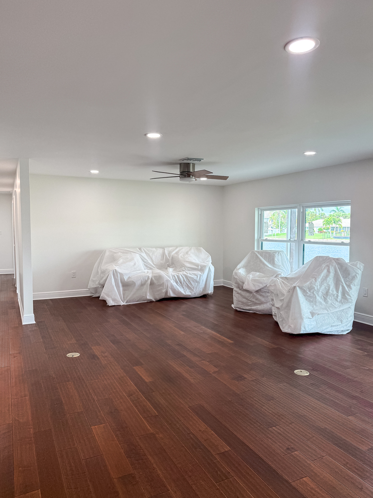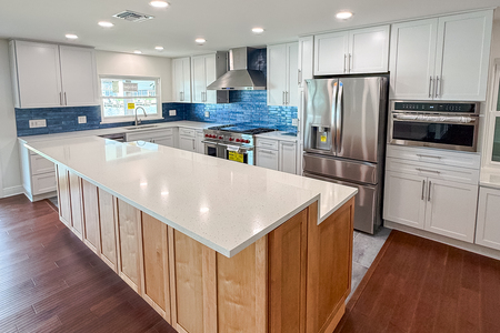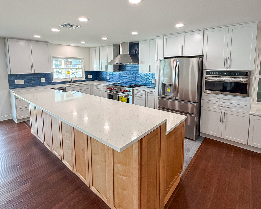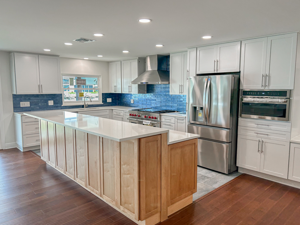 This kitchen remodel is a true reflection of trust and resilience. East Coast Construction SD originally completed this modern kitchen earlier in 2024. During hurricane season in the fall of late 2024, a powerful storm severely damaged the home, completely destroying the newly finished remodel.