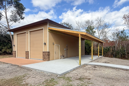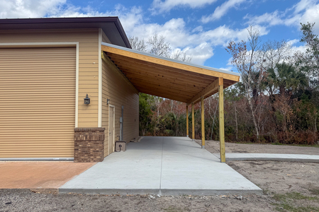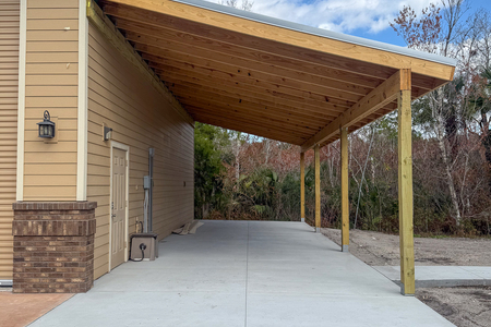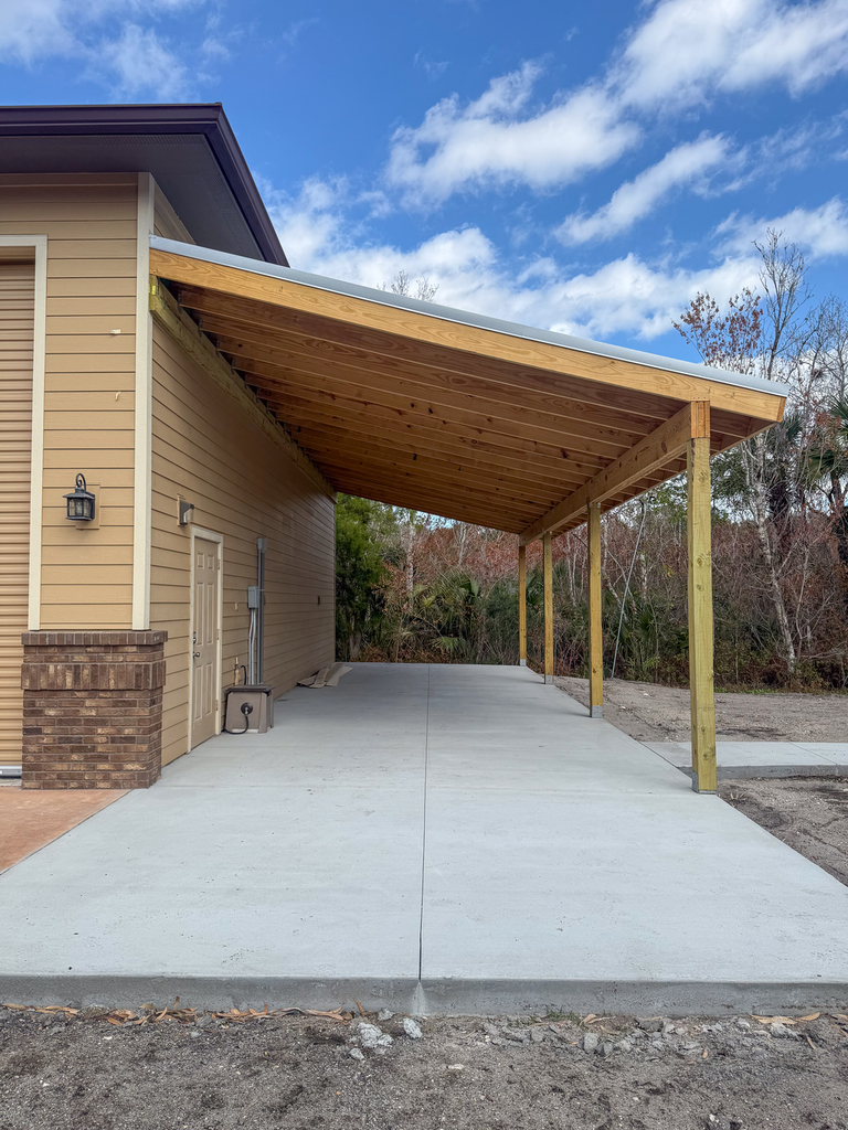 Another completed project in the books! This custom carport addition was built onto the side of a detached garage to add functional, covered space while keeping a clean, seamless look.