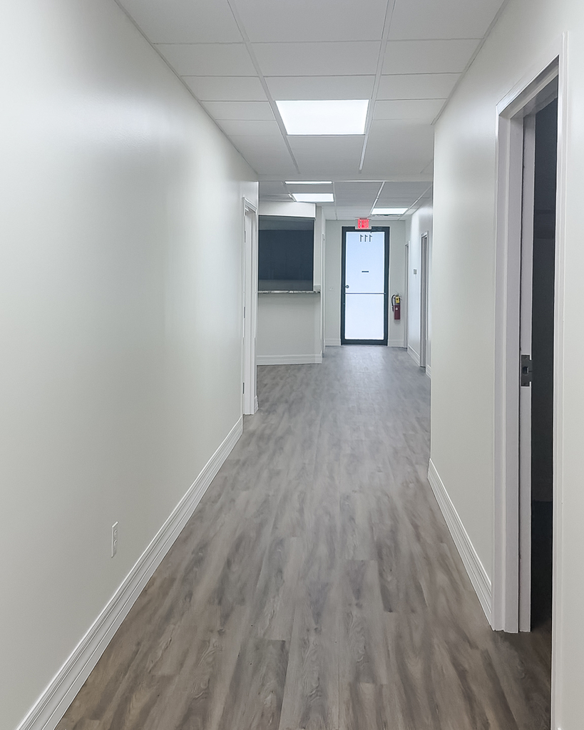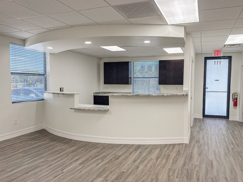 This commercial office transformation showcases the full scope of East Coast Construction SD’s capabilities in modern renovation and functional design. The remodel includes converting the front entrance into a sleek countertop check-in area, constructing a new break room, and opening up the floor plan to create a more efficient space for examinations and workflow. We reconfigured private offices to improve usability, installed ADA-compliant railings to meet accessibility standards, and followed all required commercial lawn care codes for a polished exterior. To complete the transformation, we added a privacy fence to ensure security and discretion.