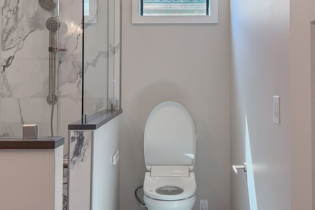 This in-law suite includes a private entrance, full bathroom, living area, bedroom, and kitchenette. All designed with aging-in-place principles and guest comfort in mind. High-end finishes, thoughtful lighting, and energy-efficient systems were integrated to elevate both form and function.